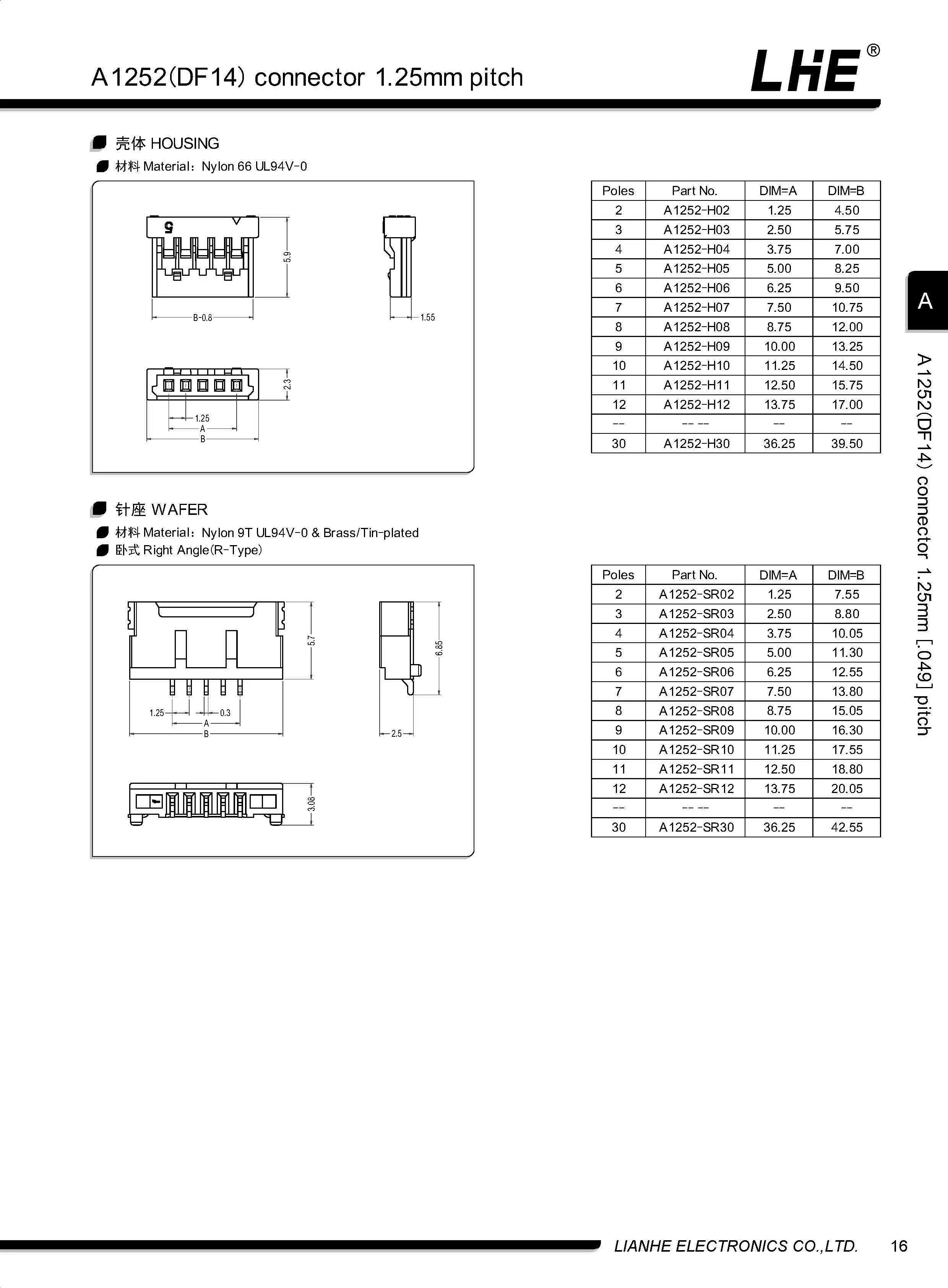 LHE Electronics > WIRE TO BOARD CONNECTOR > A1252(DF14) Connector 1.25mm Pitch