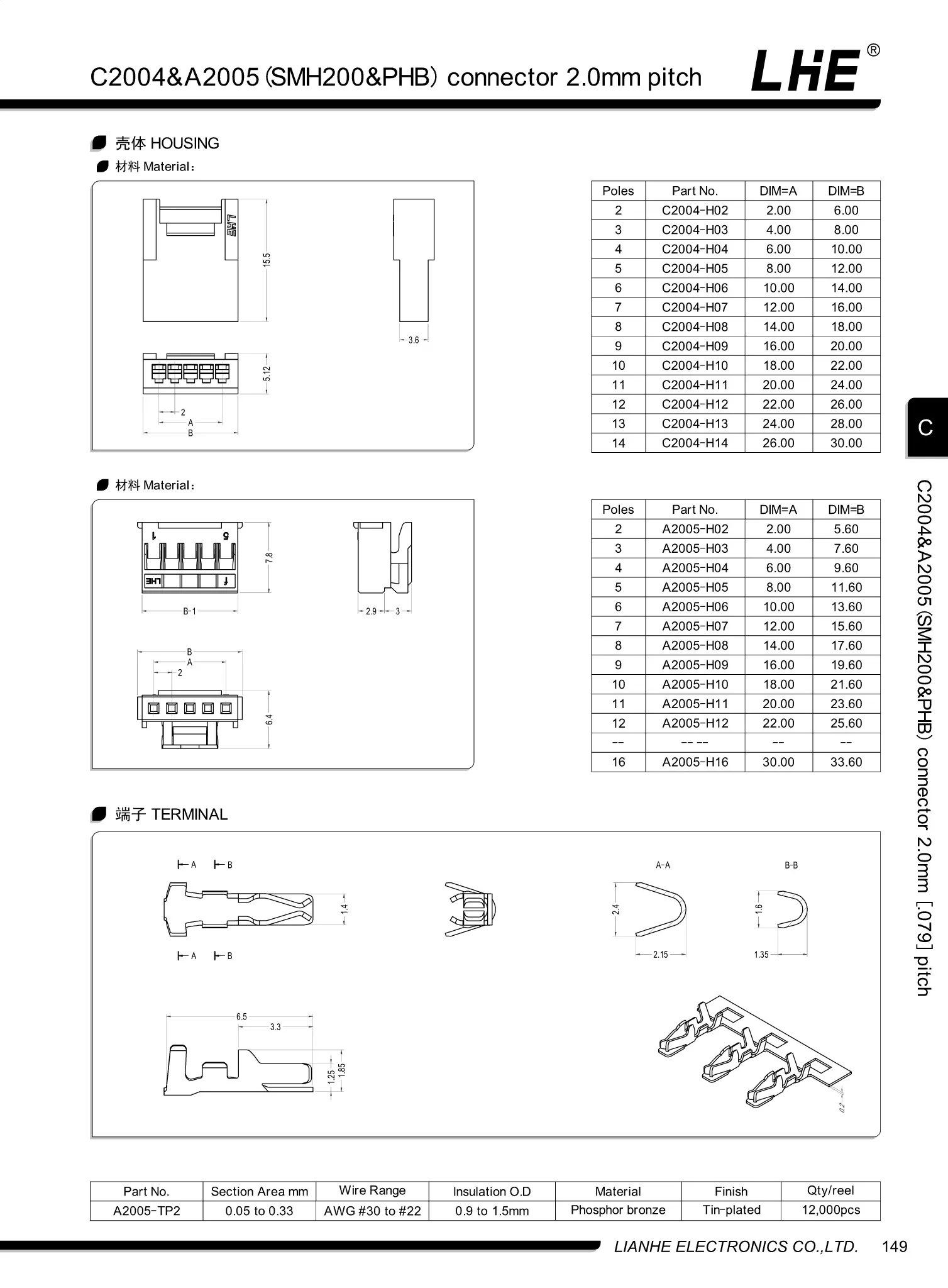 C2004&A2005 series are replacement YEONHO SMH200 connectors. 2.0mm pitch, It’s widely use wire to wire connectors.