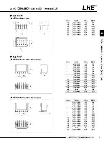 材料 Material: LCP UL94V-0 & Brass/Tin-plated A1001(SH&SHD) connector 1.0mm [.039] pitch