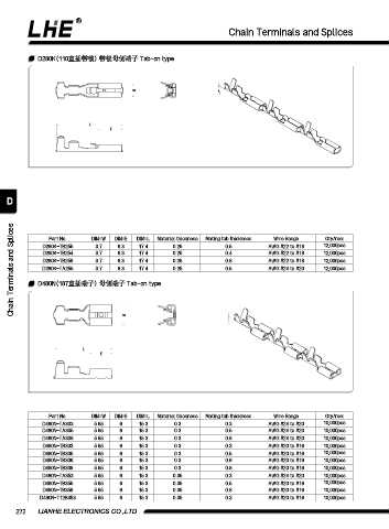 Chain Terminals and Splices D480N(187直插端⼦) ⺟侧端⼦ Tab-on type 0.25 Mating tab thickness AWG #22 to #18 12,000pcs