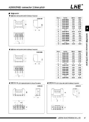 材料 Material: Nylon 66 UL94V-0 & Brass/Tin-plated A2005(PHB) connector 2.0mm [.079] pitch