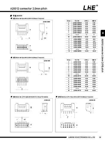 材料 Material: Nylon 66 UL94V-0 & Brass/Tin-plated A20012 connector 2.0mm [.079] pitch