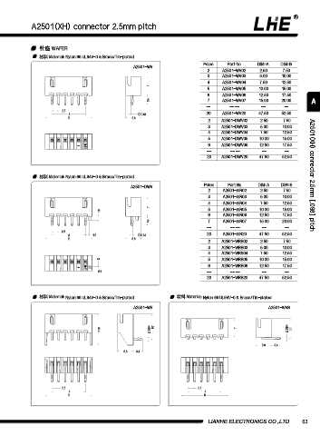 材料 Material: Nylon 66 UL94V-0 & Brass/Tin-plated A2501(XH) connector 2.5mm [.098] pitch