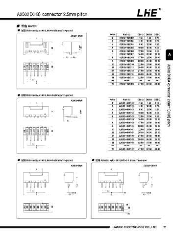材料 Material: Nylon 66 UL94V-0 & Brass/Tin-plated A2502(XHB) connector 2.5mm [.098] pitch