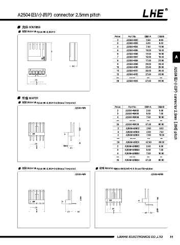 材料 Material: Nylon 66 UL94V-0 & Brass/Tin-plated A2504(EI/⼩四P) connector 2.5mm [.098] pitch