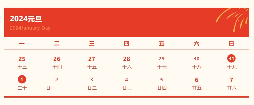 During this period, all employees will usher in the first holiday of the new year and celebrate the arrival of the new year together.